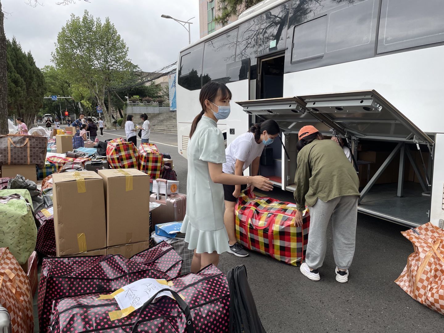 在搬迁过程中,班主任老师崔艳萍、汪玉松在南望山校区组织同学们搬迁上车,王五科、邓琪敏老师在未来城校区接车迎接同学们,学院学工组全体老师各司其职,“张国旗班”志愿者团队冲锋在前,与同学们一起行动在搬迁工作第一线。