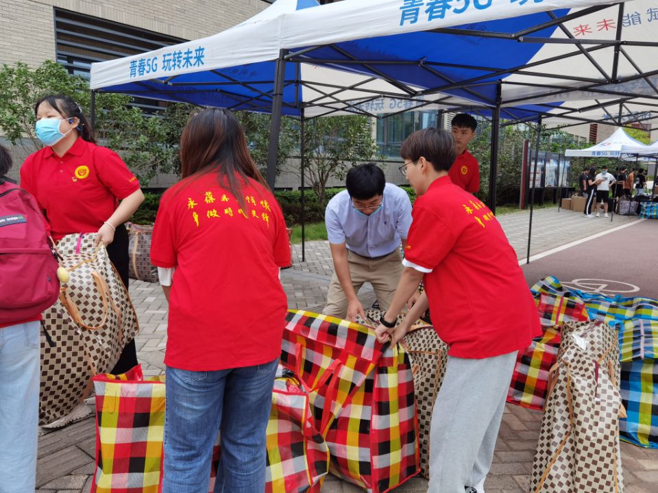 下午四点,2020级学生陆续到达未来城校区。下车后,由张国旗班同学积极主动的协助同学们卸下行李、同学们有序的传接行李、志愿者引导同学运送行李,大家互相传递运送,大大提升搬宿舍的效率。很多同学们不喊苦不喊累,班级男生主动帮其班级女生承担搬行李重任,遇到任何有困难的同学都会伸出援助之手,充分体现“环境人”耐劳苦、讲奉献的精神。