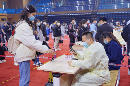 一名党员,一面旗帜。在学校组织的多轮核酸检测中,学院全体辅导员以身作则,率先垂范,冲锋在前,投身到抗疫志愿服务中,用身体力行给学生树立青春榜样。环境学院党委副书记王海锋带领学院辅导员李平、孟庆达、陈俊男、宋霖、耿婧分布在核酸检测点现场的各个岗位,各司其职、各尽其责,全面助力核酸检测工作,确保了整个核酸检测工作有序、有效进行。