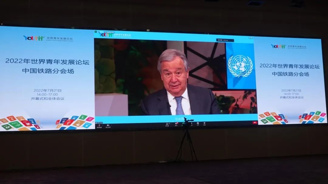 国务委员兼外长王毅以视频方式宣读习近平主席贺信,鼓励与会青年朋友们积极响应习近平主席的号召,以青年的活力、朝气和担当,为全球发展进步事业贡献自己的力量。