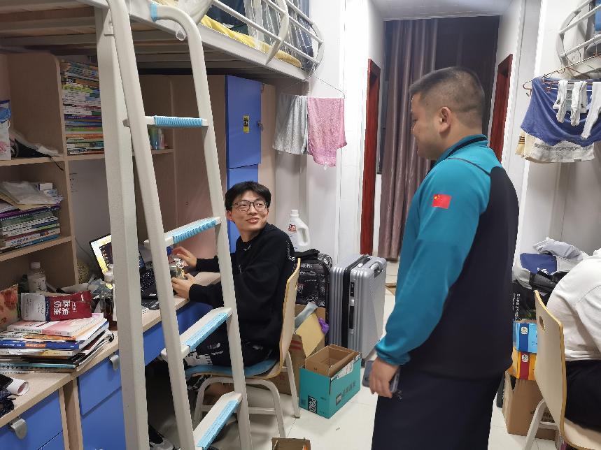 学工组辅导员走访两校区学生宿舍,参与学院新生杯篮球赛和“篮球嘉年华”等学生活动,与学生深入交流。切实增强学生安全意识,提醒学生严格遵守疫情防控规定,加强体育锻炼,养成良好生活习惯。