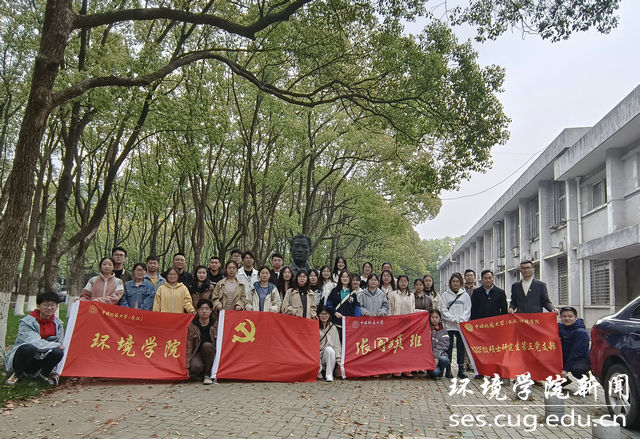 3月29日下午,环境学院2022级硕士研究生第三党支部在南望山校区校史馆、四重门以及英雄校友张国旗雕像前开展“明校史担使命,仰英雄传精神”主题党日活动。学院党委书记李素矿、副书记王海锋,辅导员陈俊男、赵恩民,支部全体党员及部分入党积极分子参加本次活动。在校史馆和四重门,全体成员在幅幅图片、件件实物中感受到了学校厚重的历史积淀与丰硕的办学成果,领略“艰苦朴素、求真务实”的校训精神。在张国旗雕像前,李素矿为大家讲解了张国旗的英雄事迹以及张国旗雕像的由来,强调张国旗雕像不仅代表他自己,更代表地大人“艰苦朴素、求真务实”的校训精神。张国旗精神既是传承,又是信仰,通过致敬英雄,引导广大青年传承张国旗精神,培育红专能优的生态环保铁军和担当民族复兴大任的时代新人。