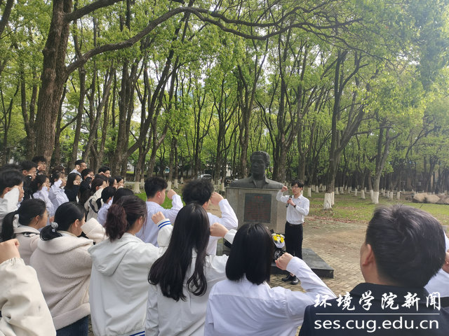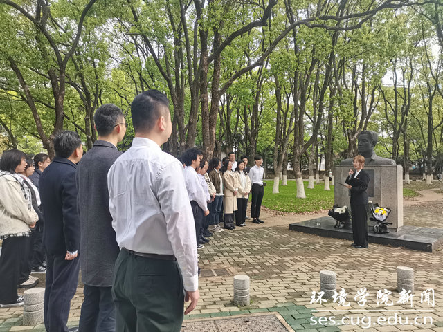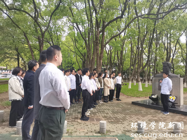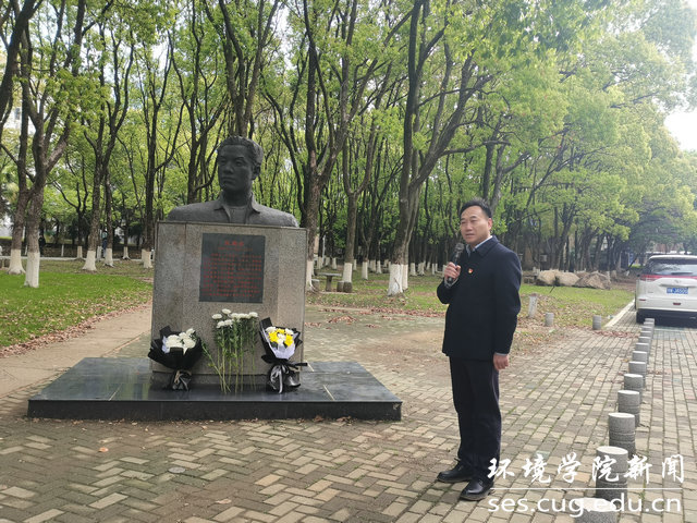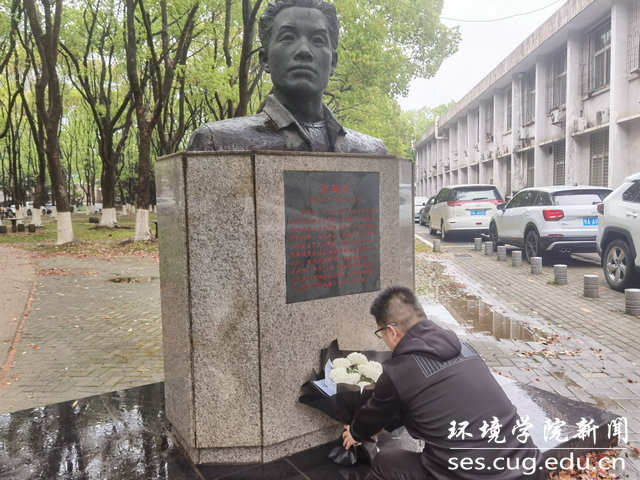 (通讯员季玉轩、孟庆达 摄影陶慧玲 编辑耿婧)清明至,万物苏,愿花飨逝人,春暖斯人。为纪念我校优秀校友张国旗,学习弘扬张国旗精神,4月5日上午9:00,环境学院师生来到张国旗雕像前开展张国旗雕像祭扫仪式。环境学院党委书记李素矿,党委副书记王海锋,院团委副书记孟庆达、陈俊男、赵恩民,“张国旗班”党支部、团支部和水文专业大学生党支部代表参与活动。“张国旗班”团支部副书记王倩主持仪式。