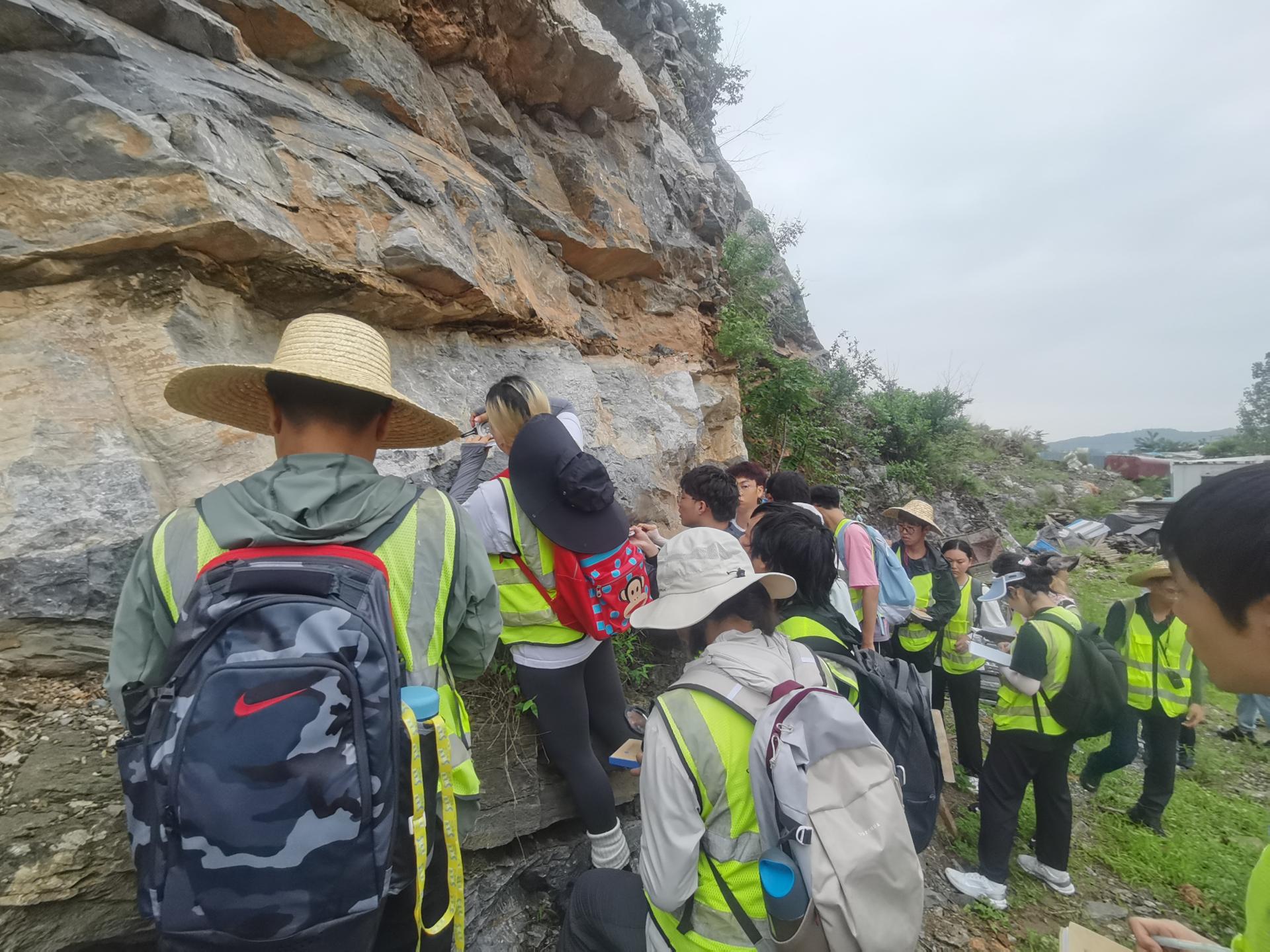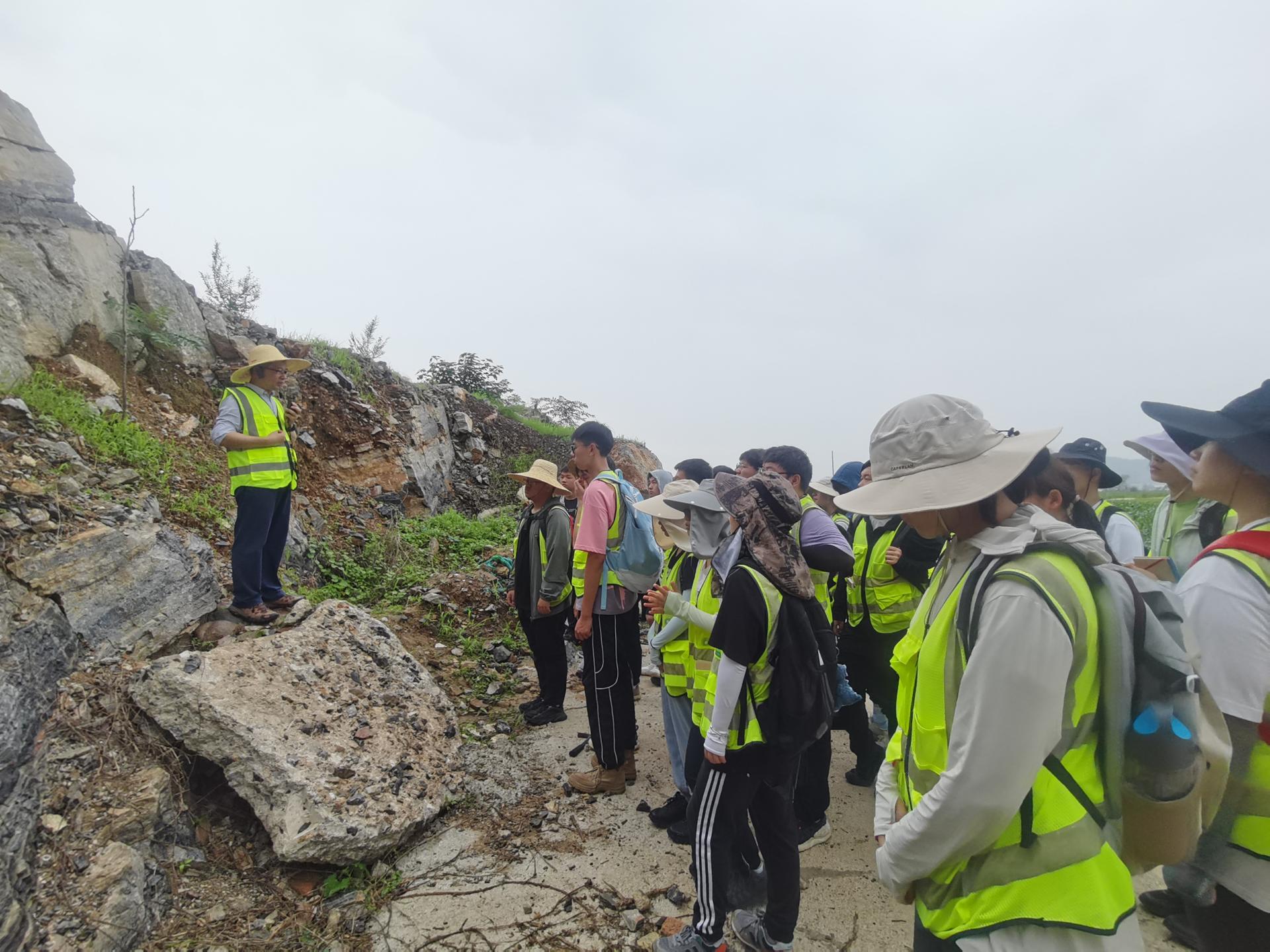 副校长李建威一行与我院045222班实习师生一同参加太平山南坡地层教学路线。他与实习学生共同聆听带班老师刘运德老师授课,并现场讲解该路线,与师生深入探讨太平山南坡地层。