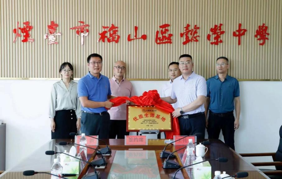 (通讯员宋霖 编辑耿婧)6月16日,环境学院副院长柴波教授、实验教学中心钱坤副教授、辅导员宋霖一行前往烟台市福山区懿荣中学开展招生宣传,并进行“优质生源基地”授牌。烟台市福山区懿荣中学校长王传金、副校长禚冯昌和张海鹏等学校领导参加此次活动。