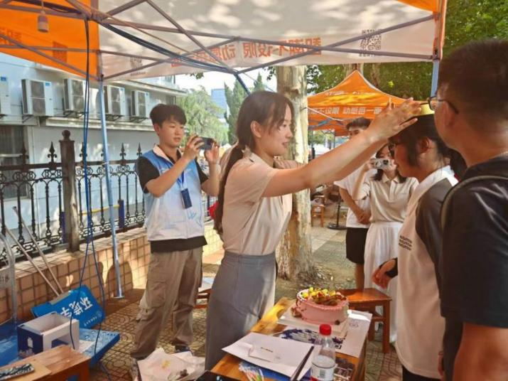 9月2日下午,本科生新生施婷婷来到学院报到。这天恰好是施同学的19岁生日,辅导员老师和志愿团的伙伴们提前为施同学准备了生日蛋糕,欢迎她在这个特殊的日子加入环境学院的大家庭。