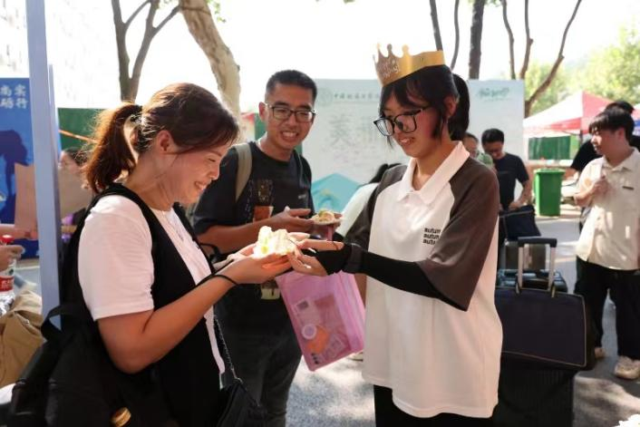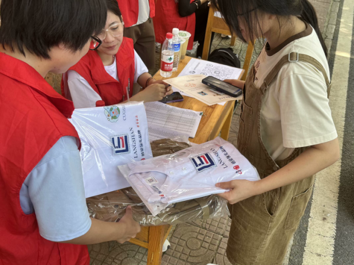 “张国旗班”志愿团向新生发放纪念品
