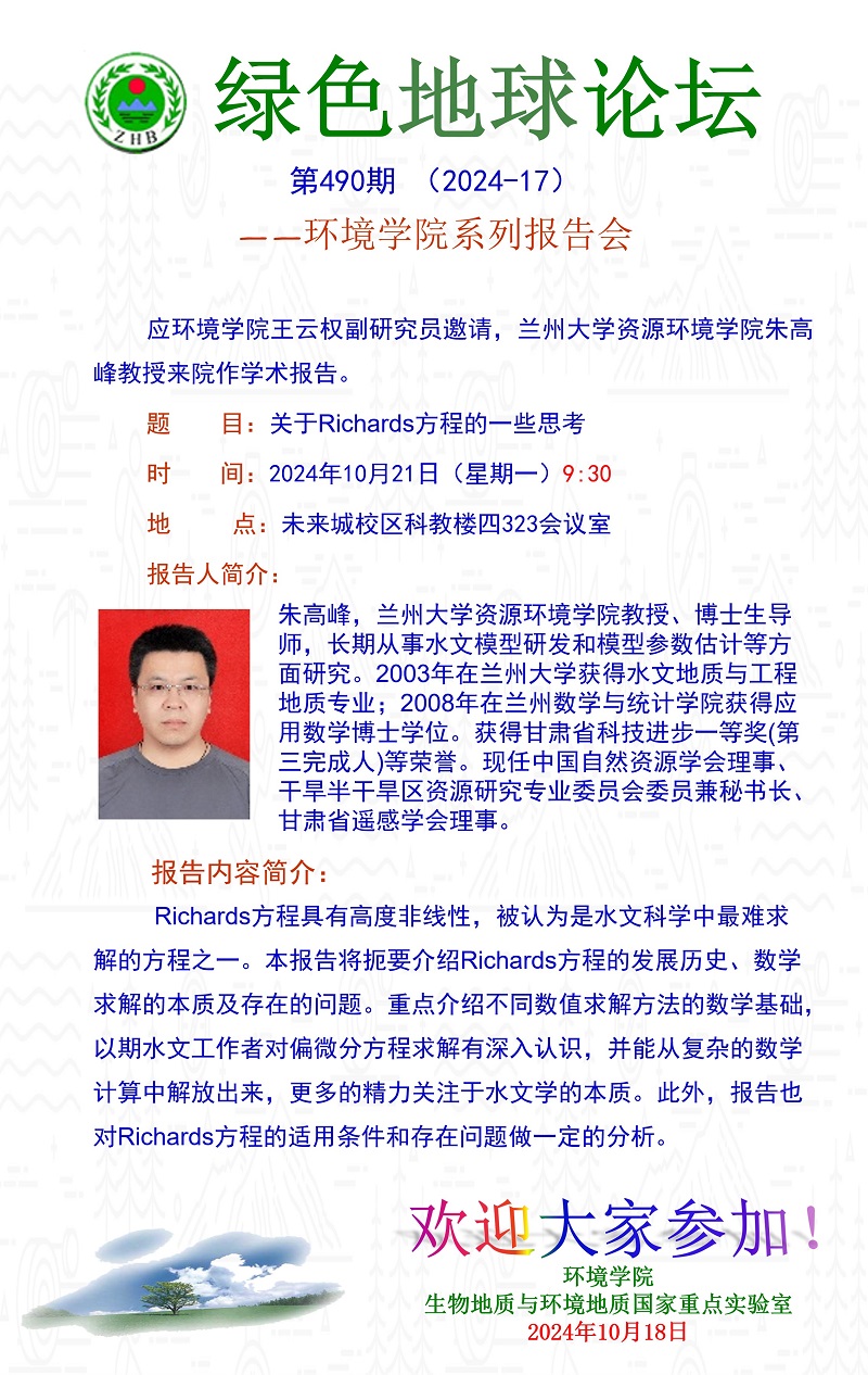 兰州大学资源环境学院朱高峰教授学术报告
