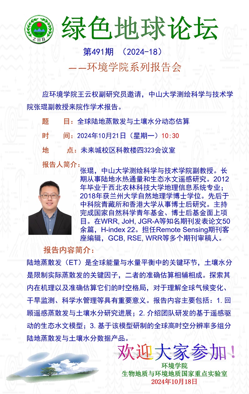 兰州大学资源环境学院朱高峰教授学术报告