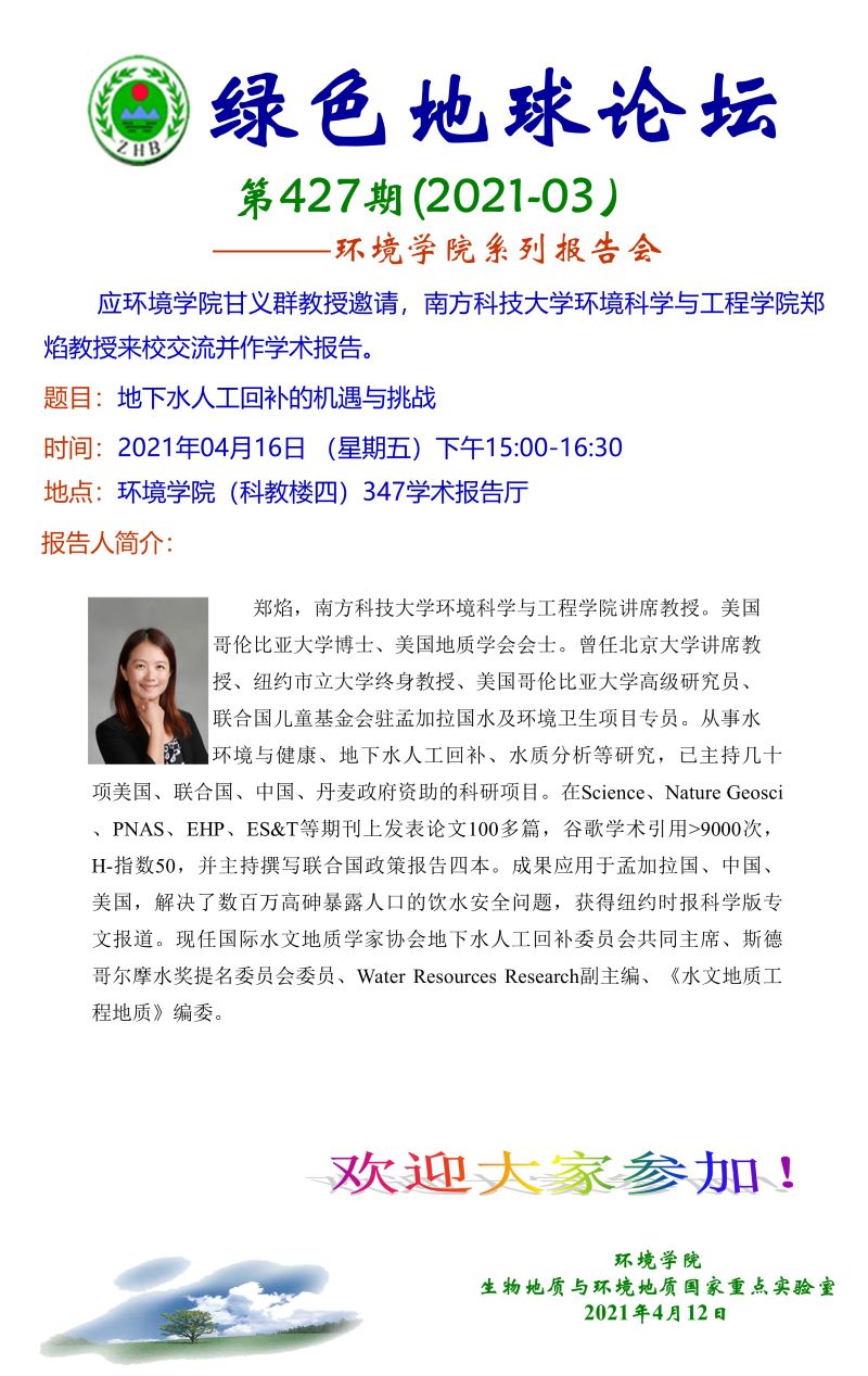南方科技大学环境科学与工程学院郑焰教授学术报告