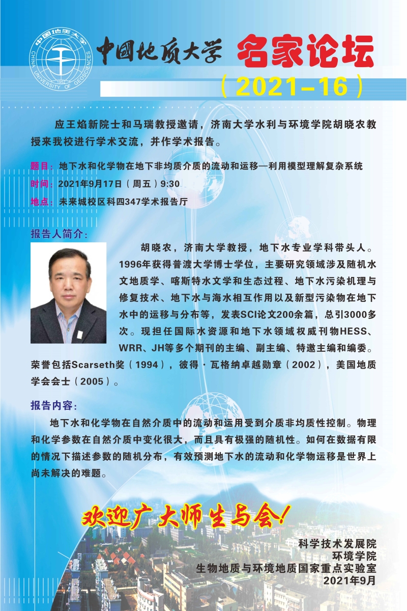 济南大学水利与环境学院胡晓农教授做客“名家论坛”
