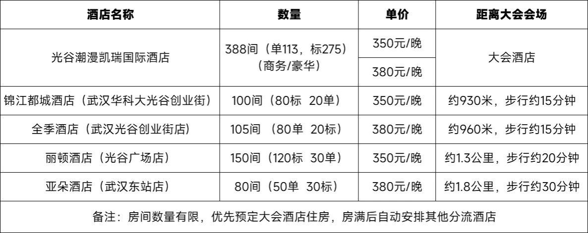 光谷潮漫凯瑞国际酒店,住宿费用自理,请在参会报名中写明房间预订数量和入住时间。