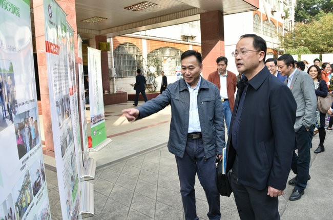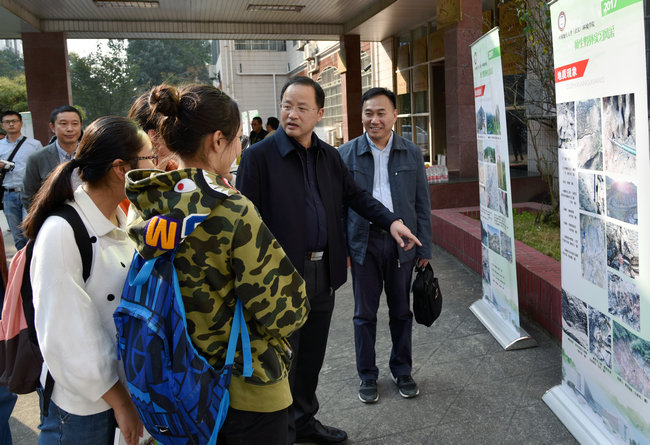 (张学海 /文/图)10月27日下午在文华楼前,环境学院2017年师生野外实习风采展开幕。校党委书记何光彩参观师生野外实习风采展。