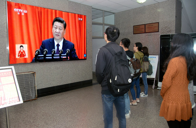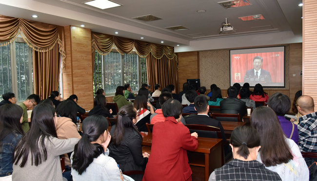 环境学院党委组织学院党委委员、党支部书记和师生党员在文华楼205报告厅和一层大厅集中收看收听习近平代表第十八届中央委员会向大会作的题为《决胜全面建成小康社会 夺取新时代中国特色社会主义伟大胜利》的报告。100多名师生党员参加了收看收听十九大开幕会。