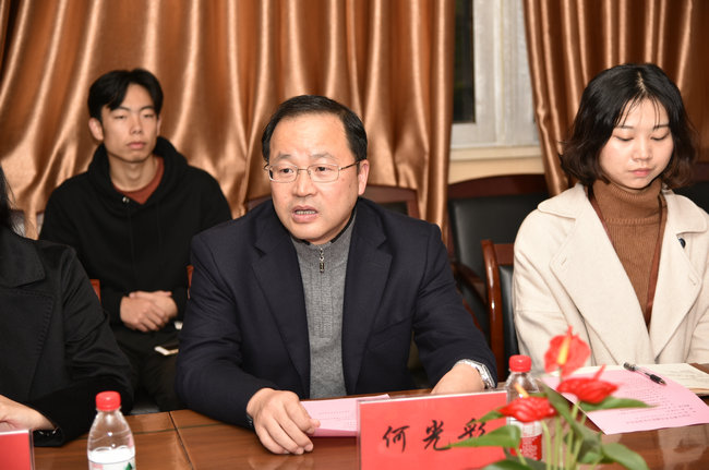 何光彩讲话。他代表学校向何姝校友表示衷心感谢,向获奖同学表示热烈祝贺。他指出,环保事业是21世纪最有前景的事业,当前中国环境污染已经到了必须下大力气治理的地步,作为地大环境人,同学们责任重大。他强调,宇驰奖学金既奖优、又助困,还扶持创新创业,体现了校友对学校青年学生的关心。他希望广大学生要深刻理解领会党的十九大精神,把建设美丽中国作为己任,不懈努力。要以宇驰奖学金为契机,学好专业知识,锻炼综合能力,勇于实践、勤于实践,使自己成为一个“个性而又全面发展”、对国家、社会、事业有用的人才。