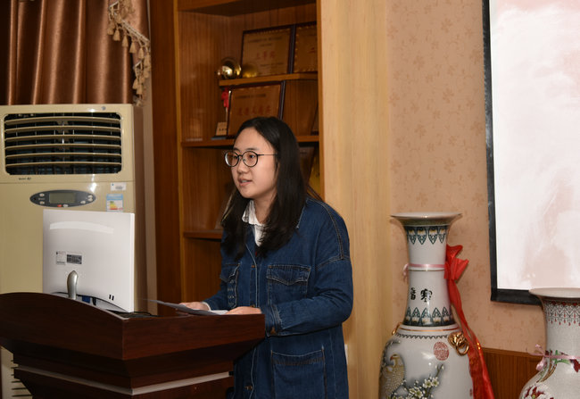 获奖学生代表刘梦雯发言。她代表全体获奖学生向何姝校友的关心与帮助表示衷心感谢。作为新时代的青年,要在党的十九大精神指引下,以何姝校友为榜样,志存高远,脚踏实地,以饱满的热情、坚定的信念投身于中国的环境事业中,建设美丽中国。