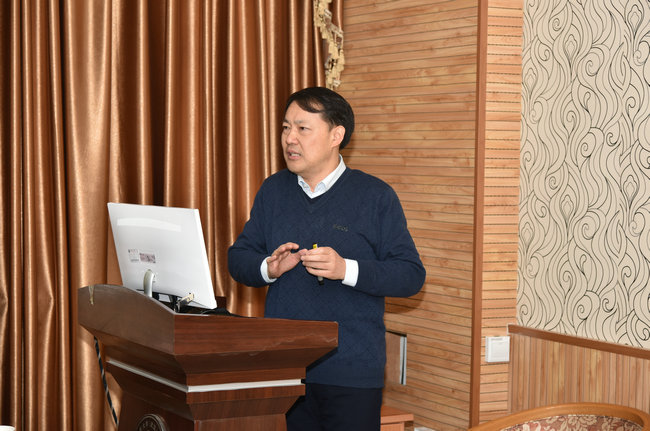 童金南在学院“校庆65周年学术交流月”开幕式上讲话。