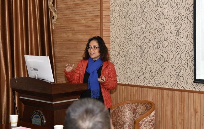 王红梅副院长介绍了学院“校庆65周年学术交流月”活动基本情况,并做了《鄂西洞穴系统地质微生物的时空分布及其古环境意义》的学术报告。