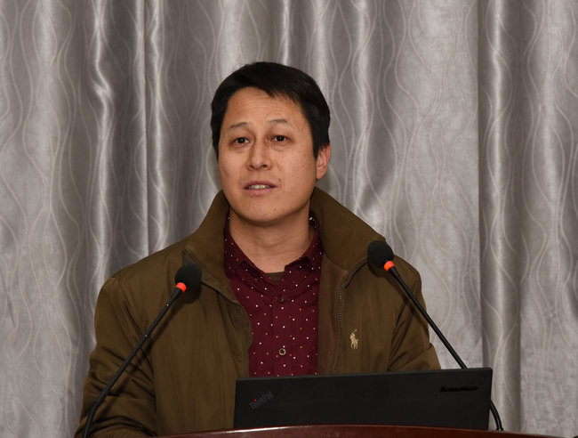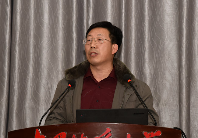 学校工会副主席高复阳讲话,并宣读校工会《关于同意环境学院召开第三届教职工大会第一次会议暨第三届工会会员大会第一次会议的批复》。