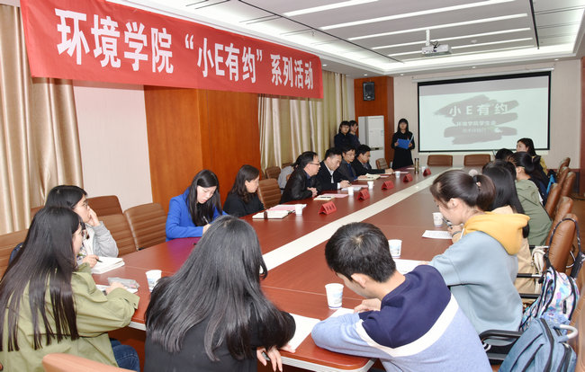 (通讯员:杨雪 李如媛 摄影:张学海 李如媛 编辑:张学海)3月15日下午,环境学院学生会第一期“小E有约”在丹桂苑212会议室举行。学院党委书记李素矿,院长马腾,副院长甘义群、郭会荣,院党委副书记朱继,辅导员杨雪、孟国强参与活动。