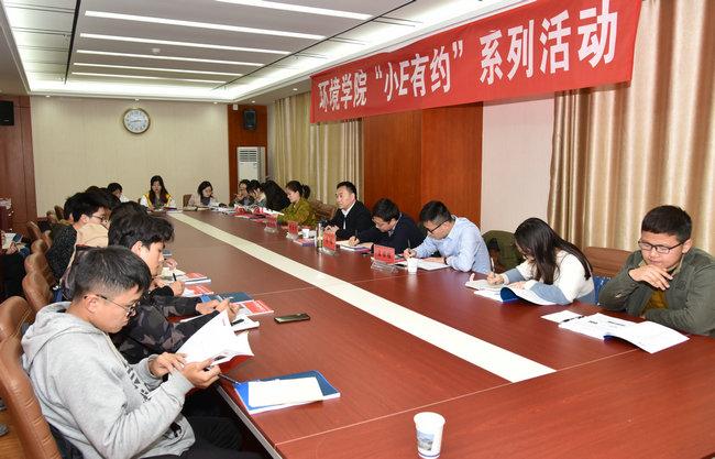 (通讯员:孟国强 臧文赫 摄影、编辑:张学海)3月22日下午,环境学院第二期“小E有约”在丹桂苑212室举行。环境学院党委书记李素矿、党委副书记朱继、院直党支部书记张学海、辅导员孟国强,各学生党支部书记,党徽照我行工作中心成员参加活动。