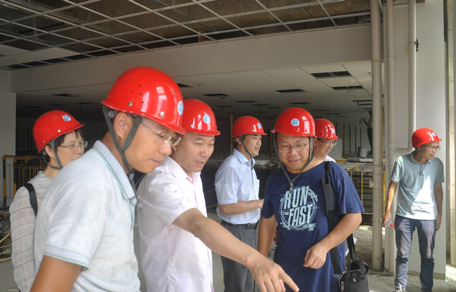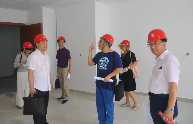 学院领导对照施工图纸,认真查看了环境学院办公楼的功能布局,并重点查看了报告厅、实验室、办公用房等房间的规划设计及功能布局情况等。
