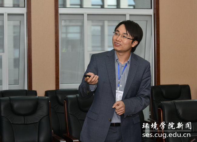 来自法国国家科研中心蒙彼利埃水文地质研究所王晓光博士以《Characterization of karst conduit networks in carbonates: hydraulic tomography and speleogenesis modelling》为题作学术报告。