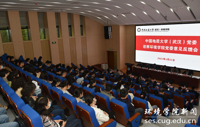 (通讯员/编辑严丽莎 摄影张学海)2021年4月21日下午,中国地质大学(武汉)党委巡察环境学院党委意见反馈会在未来城校区科教楼四-108报告厅召开。学校党委常委、副校长刘杰出席会议。学校党委第二巡察组组长陈飞,副组长张志毅,巡察组成员宋冬冬、徐媛,校纪委派驻未来城校区纪检组组长高晓东,环境学院党委委员、学院行政班子成员,各学科带头人、院分学术委员会成员,省政协和民主党派代表、纪检委员、工会委员、教代会代表、党代会代表、教职工和学生代表等参加反馈会。环境学院党委副书记、院长马腾主持巡察反馈会。