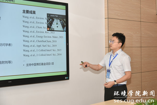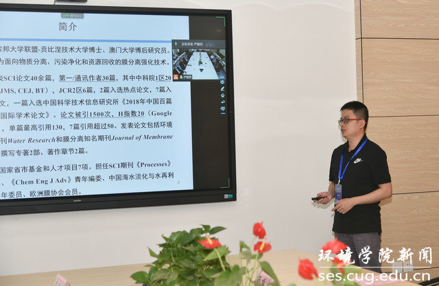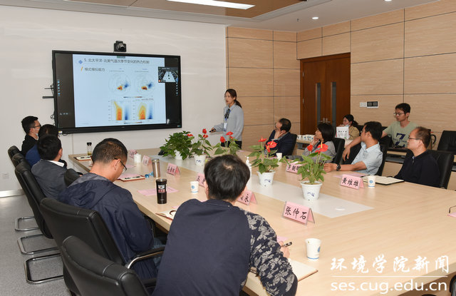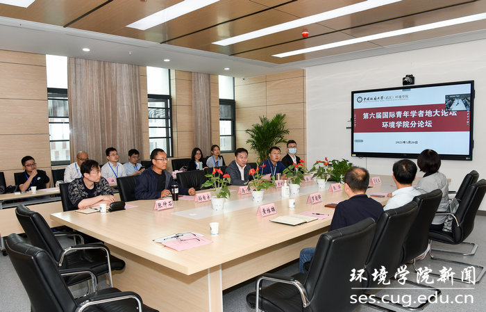 副院长柴波向参加第六届国际青年学者地大论坛环境分论坛的国际青年学者介绍环境学院,副院长孙自永作环境学院科研平台介绍。