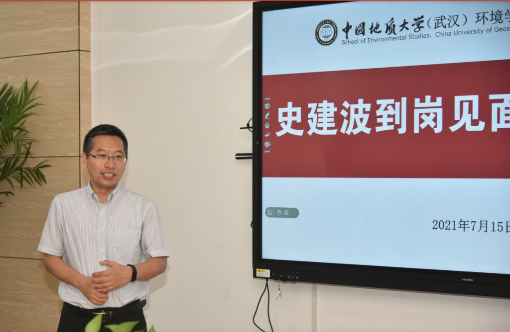 (通讯员陈俊男 左麦枝 编辑严丽莎 摄影张学海)2021年7月15日上午,环境学院新任院长史建波到岗见面会在科教楼四308会议室召开,会议采取线上线下同步进行。校党委常委、副校长刘杰,校党委组织部部长陈文武,学院党政领导班子成员、院党委委员、各系室(中心)负责人、教工党支部书记,教师代表、院办与学工组人员等参加线下会议,在野外教学科研实习的教职工线上参会。