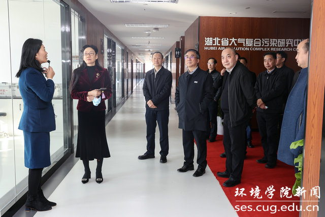 吕文艳一行参观了湖北省生态环境厅与地大共同建设的湖北省大气复合污染研究中心。陈楠主任介绍了中心的空间布局和仪器设施。我院孔少飞教授汇报了中心一期建设进展和二期建设规划。