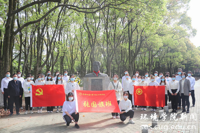 (通讯员郝运、孟庆达 摄影林韬、边舟悦、侬娅 编辑耿婧)时当春光融融,眼尽草木青青,清明节至,日丽风清。为纪念与缅怀我校优秀校友张国旗,学习和弘扬张国旗精神。4月5日上午,环境学院师生来到张国旗雕像前开展张国旗雕像祭扫仪式。环境学院党委书记李素矿,党委副书记王海锋,院团委副书记李平、孟庆达、陈俊男,“张国旗班”党支部、团支部和水文专业大学生党支部代表参与活动。仪式由“张国旗班”团支部副书记覃晓琳主持。