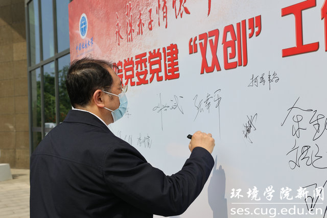 湖北省委教育工委专职副书记、省教育厅党组成员张幸平在“永葆赤子情怀、争做时代先锋”环境学院党委党建“双创”工作成果展签名。