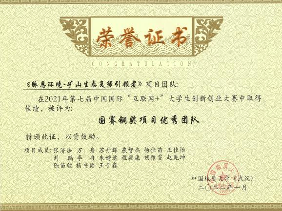 2021年第七届中国国际“互联网+”大学生创新创业大赛传统赛道国家级铜奖 |