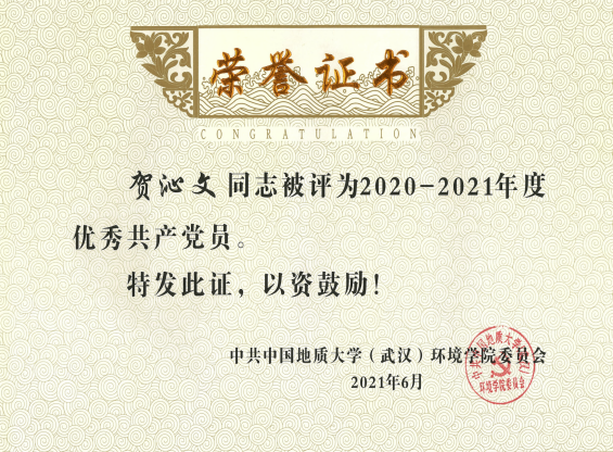 贺沁文被评为学院2020-2021年度优秀共产党员 |