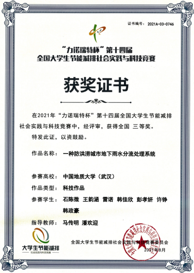 第十四届全国大学生节能减排大赛三等奖 |
