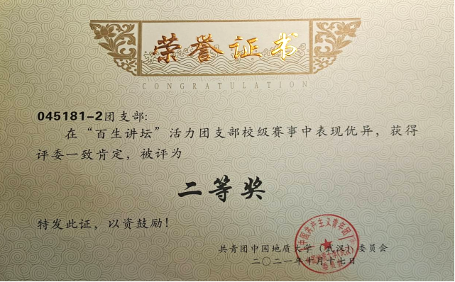 2021年校级“百生讲坛”活力团支部二等奖 |