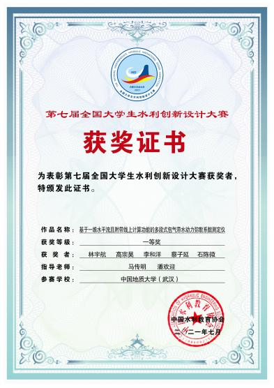 第七届全国大学生水利创新设计大赛一等奖 |