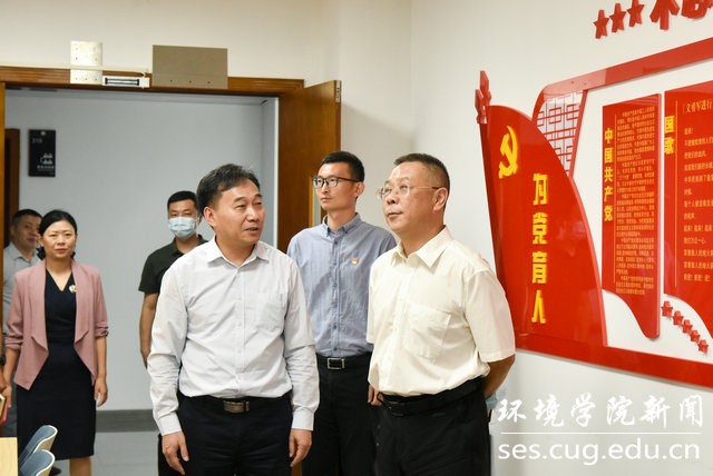 在环境学院党员之家,简要汇报了党建思政阵地建设管理与师生党员主题活动开展情况。