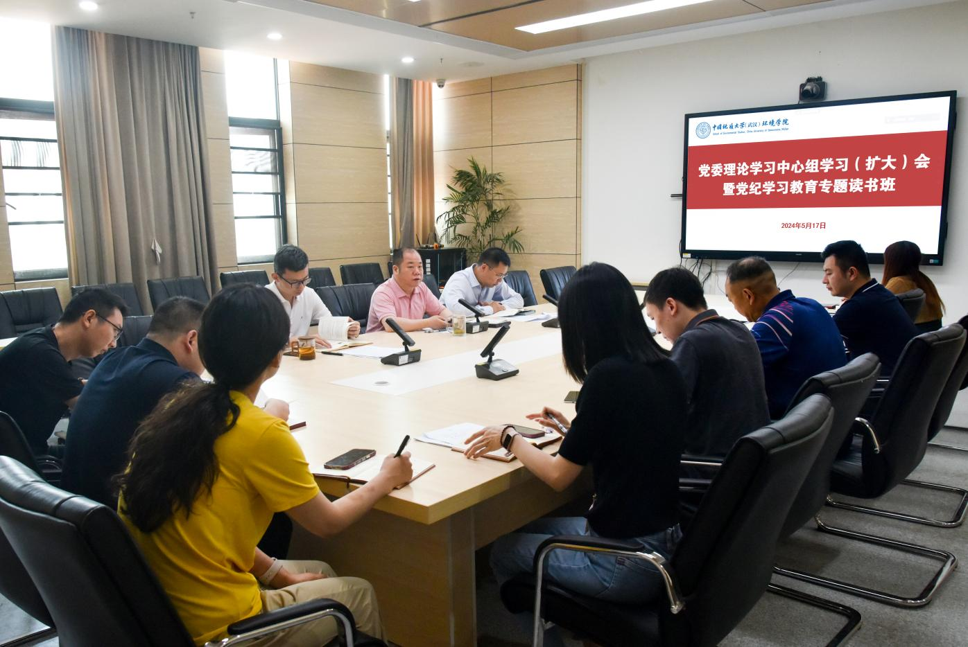 (通讯员/编辑何娟 摄影孔凡非)2024年5月17日,环境学院党委在科教楼四308室召开党委理论学习中心组学习(扩大)会暨党纪学习教育专题读书班,专题学习新修订的《中国共产党纪律处分条例》(以下简称《条例》)。学院党委理论学习中心组成员,教工党支部书记、教工党支部纪检委员等参加学习。