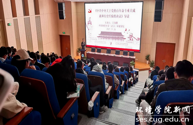 (通讯员陈倩 编辑耿婧)2021年11月26日晚上8:00,环境学院第七十一期入党积极分子培训班第六讲在科教楼四108报告厅展开,环境学院党委副书记王海锋以《中共中央关于党的百年奋斗重大成就和历史经验的决议》导读为题讲授党课。