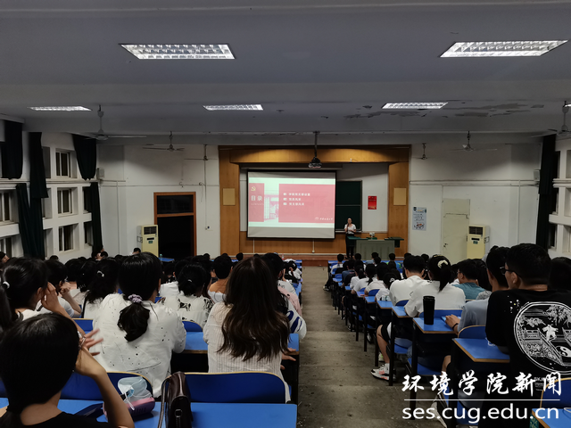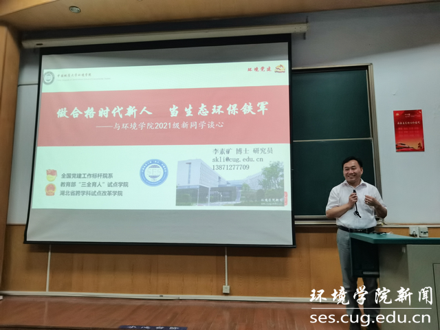 (通讯员陈俊男 摄影陈俊男 编辑耿婧)2021年9月9日晚上,环境学院2021级本科新生入学教育系列活动在南望山校区教一楼第二阶梯教室举行。学院党委书记李素矿以“做合格时代新人 当生态环保铁军”为题讲党课。2021级辅导员陈俊男及全体本科新生270余人参加。