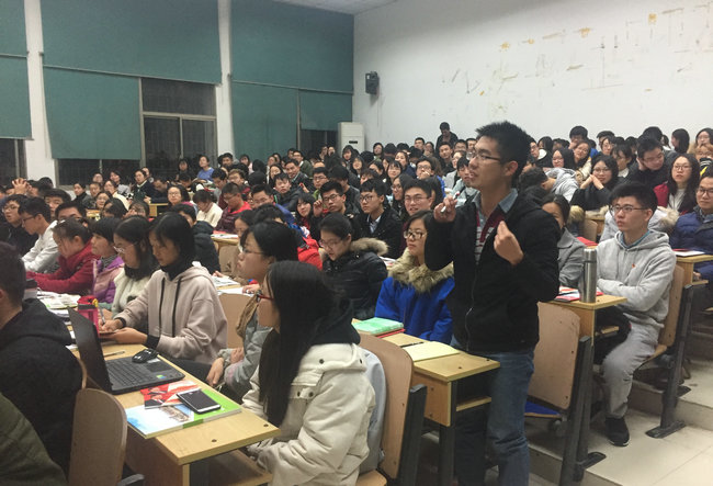 在党课提问环节,同学们争相提问。在孙同同学问道如何借十九大契机加强地大的文化建设时,王焰新解答道,学校一直高度重视校园文化建设,开展了丰富多彩的校园文化活动。增强人文素养非常重要,人文素养是幸福源泉之一。今后会多开展人文讲座,同时鼓励同学们与文科学生开展跨学科之间的交流,同学们必须多读书、读好书,努力提高自己的人文素养。