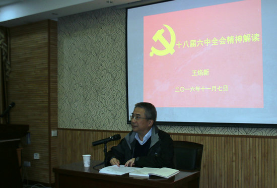 2016年11月7日晚,在文华楼205报告厅,王焰新校长讲授党课,解读党的十八届六中全会精神。环境科学与工程系党支部全体党员、环境学院党委中心组成员、地球科学学院中心组成员、审计处全体党员干部参加了党课。