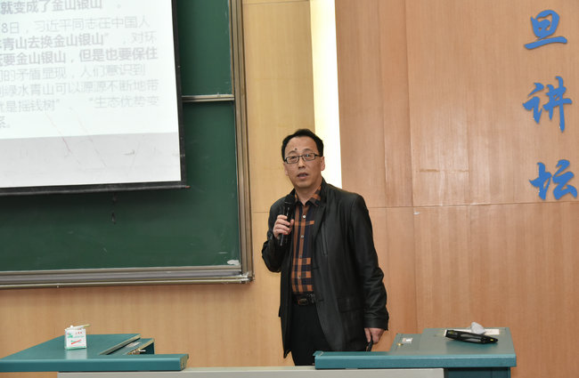 (通讯员:孟国强 张正煊 摄影:张锦 编辑:张学海)2018年4月22日下午,环境学院党校第十八期入党积极分子培训班第六讲在教三楼110室举行,院长马腾以“牢固树立社会主义生态文明观,勇做时代新人”为题为学员讲党课。100余名本科生、研究生入党积极分子参加。