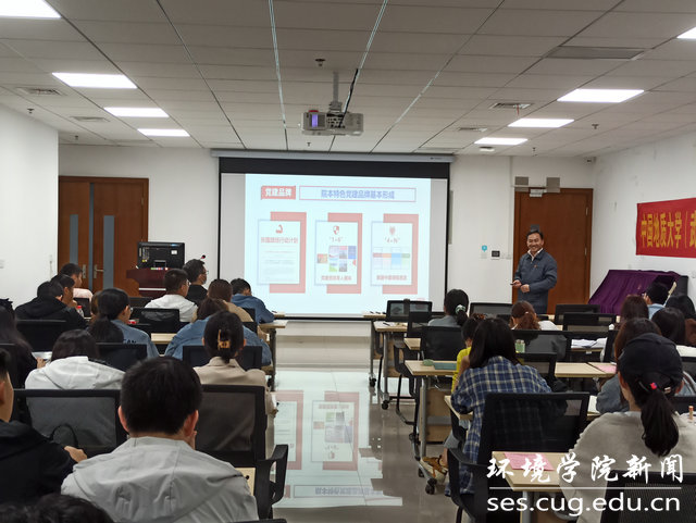 李素矿强调,寻找红色钥匙,注入红色基因铸魂育人,为党育人、为国育才,建设新时代生态环保铁军的摇篮是学院党委的奋斗目标。他简要回顾了近70年来学院的发展历程、奋斗故事、典型人物和重要事件。结合学院“三全育人”综合试点改革、全国党建工作标杆院系建设,分享了张国旗班行动计划、党建资政育人载体“1+6”、美丽中国“4+N”环境地球科学类课程思政和六红”“六专”“六能”“六心”高质量特色思政体系等院本特色党建品牌。