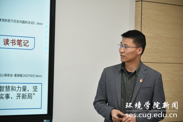 (通讯员/编辑严丽莎 摄影耿婧)2022年4月21日,环境学院2021年度党支部书记述职评议考核在科教楼四-308会议室举行。学院党委书记李素矿,党委副书记、院长史建波,党委副书记王海锋,全体教工党支部和学生党支部书记,组织秘书严丽莎,学生辅导员宋霖、陈俊男等参加会议。