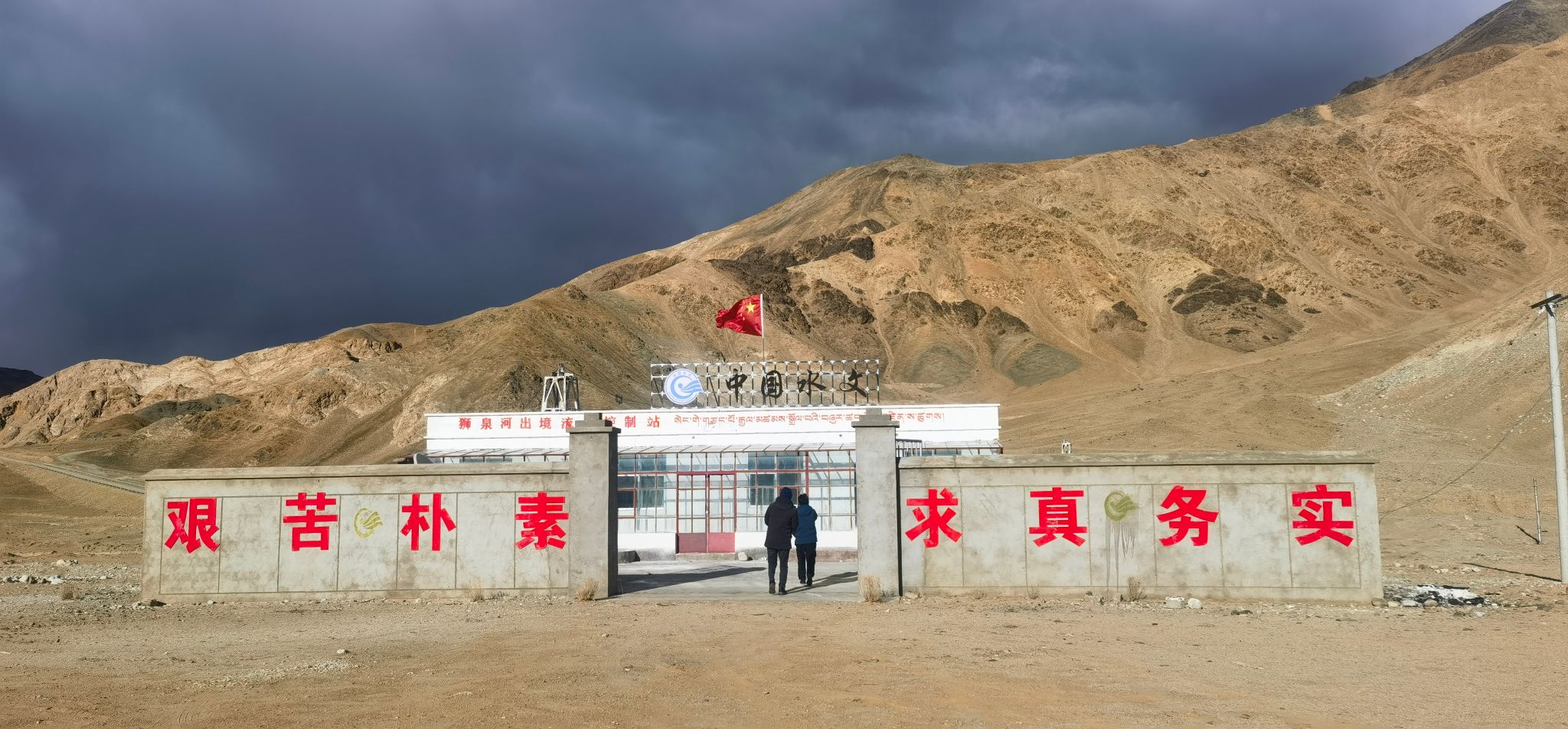 2023年末,他将“艰苦朴素,求真务实”的校训印在了狮泉河出境流域控制站灰白简朴的围墙上,地大人的精神站上了“世界屋脊的屋脊”。
