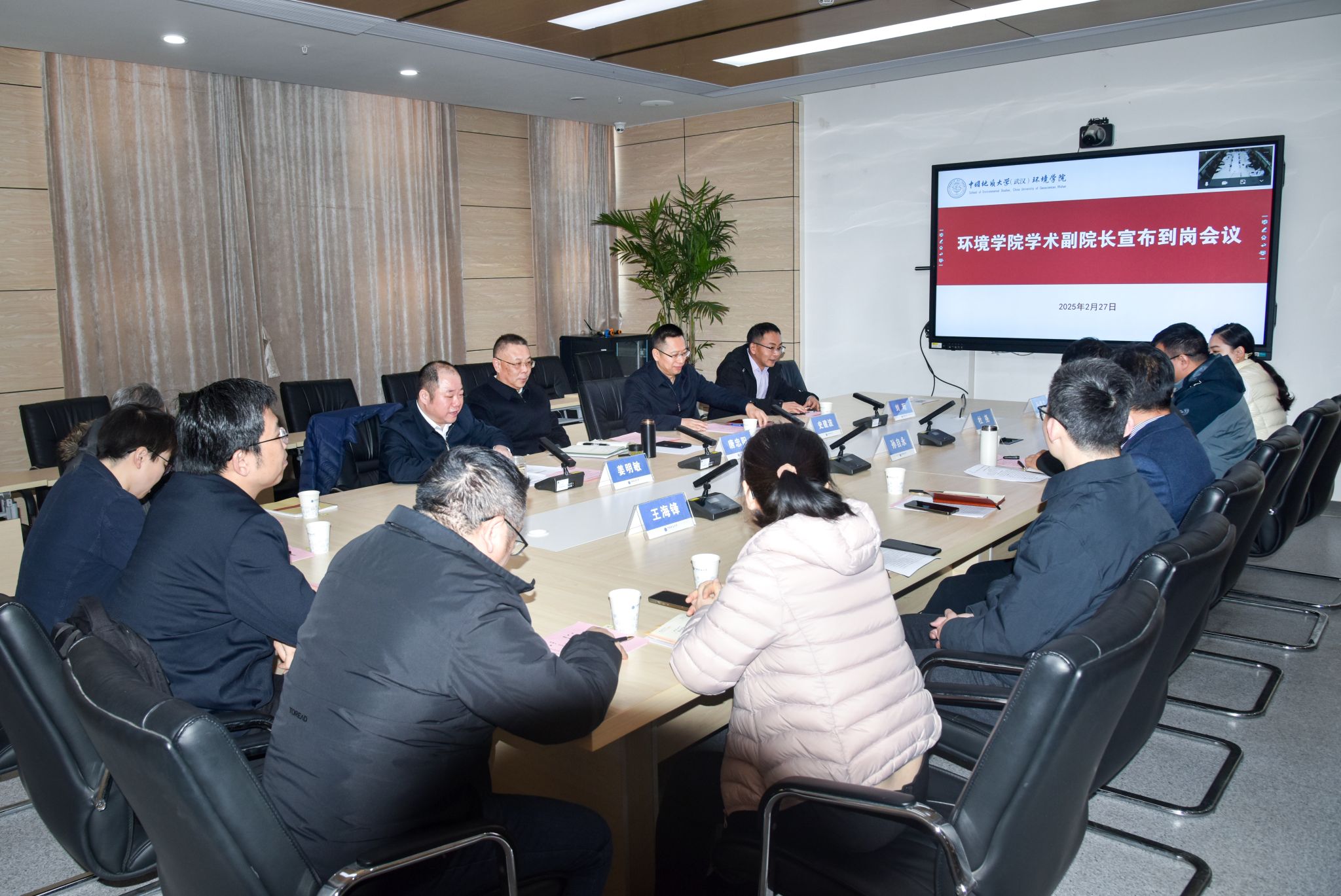 (摄影张学海 通讯员/编辑王孟雪)2月27日上午,环境学院学术副院长宣布到岗会议在科教楼四308室召开。校党委副书记、纪委书记唐忠阳,环境学院党政领导班子全体成员,三级单位党政负责人及教职工代表等参加会议。学院党委书记姜明敏主持会议。