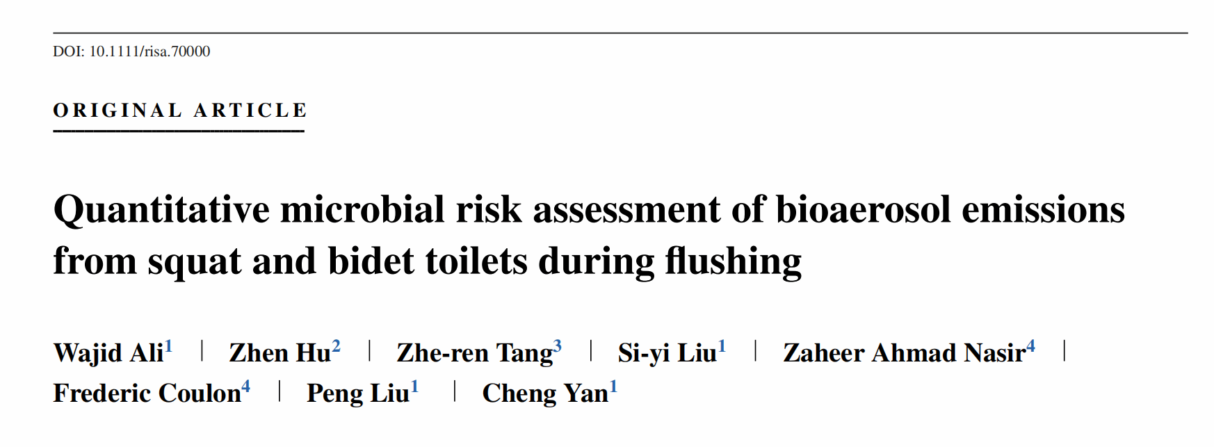 (转自留学地大)近日,我校巴基斯坦籍博士研究生瓦基德(Wajid Ali)在中国地质大学环境学院颜诚副教授的指导下于国际知名期刊《Risk Analysis》(T1,中文名:风险分析)上发表学术论文,题目为《冲厕时释放微生物气溶胶的微生物定量风险评估研究》(英文题目:《Quantitative microbial risk assessment of bioaerosol emissions from squat and bidet toilets during flushing》)。此研究不仅揭示了厕所冲水量与健康风险之间的定量关系,更为解决公共卫生、健康风险与水资源节约利用之间的平衡难题提供了新思路。